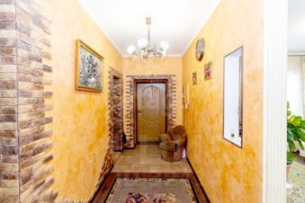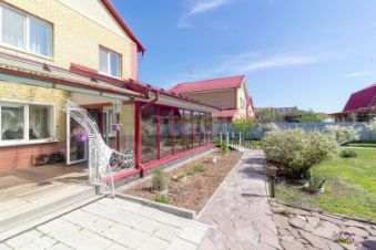 Построен из керамзитоблока, утеплён минеральной плитой и облицован керамическим кирпичом — всё это обеспечивает надёжность, энергоэффективность и эстетичный внешний облик.