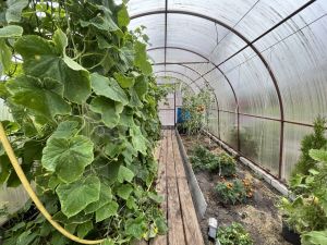 Просторная теплица из поликарбоната будет вас радовать урожаем из огурцов и помидоров.