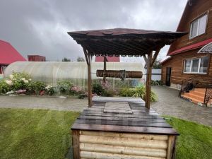 На территории есть место для отдыха - просторная деревянная беседка, мангальная зона.