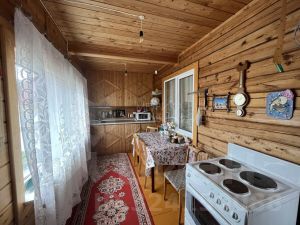 Дом из бруса, 2 этажа, общей площадью 120 кв.м. На первом этаже кухня, комната с печкой.