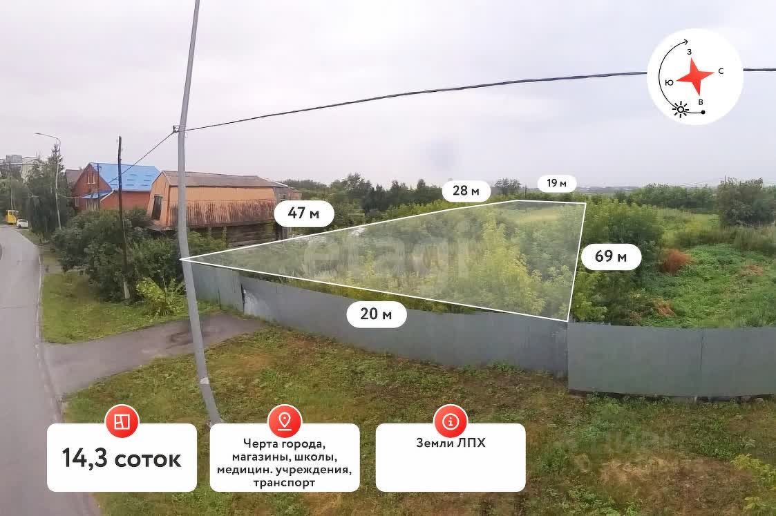 Участок расположен в черте города, что обеспечивает удобную транспортную доступность и близость к инфраструктуре. Рядом находятся магазины, остановки общественного транспорта, школы и медицинские учреждения. Развитая дорожная сеть позволяет быстро добраться до центра Тюмени и основных выездных магистралей. Удобное расположение делает этот участок привлекательным как для строительства частного дома, так и для ведения подсобного хозяйства.
