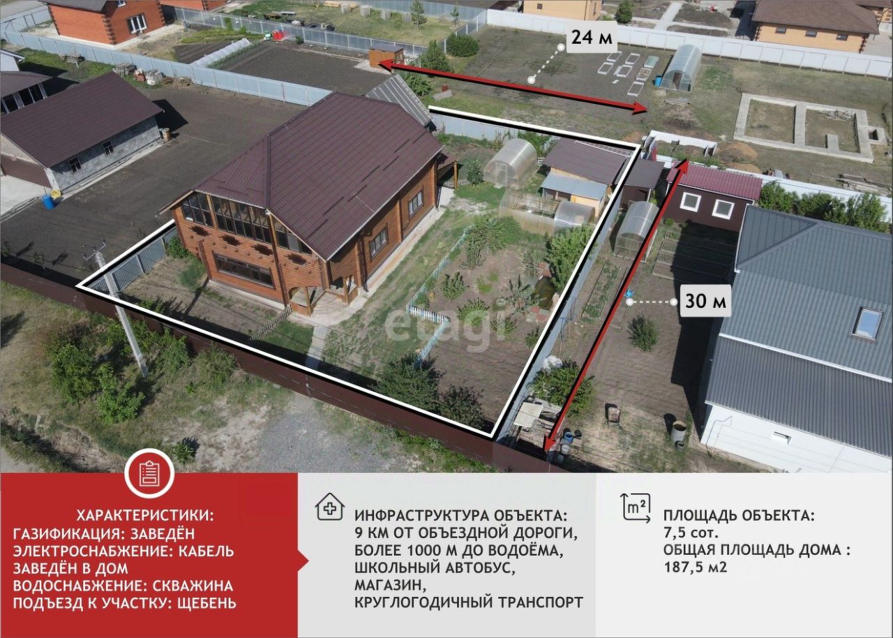 Коммуникации: септик 13 кубов, электрическое отопление с индивидуальными котлами на этаж, водоснабжение из скважины