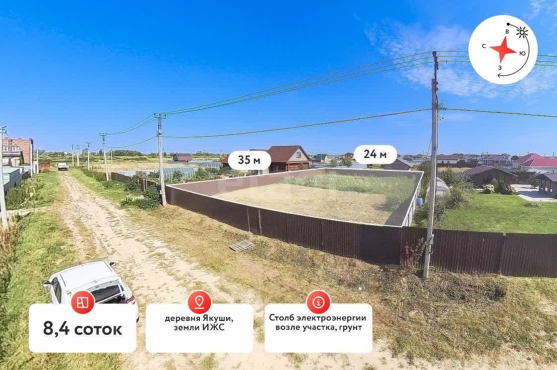 Продаем Земельный участок площадью 8.4 сотки, расположен в д. Якуши, по Старотобольскому тракту!