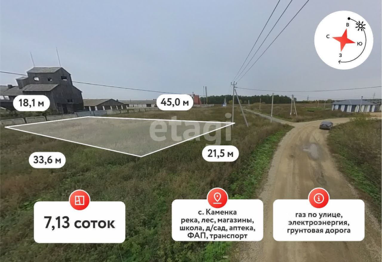 До детского сада и школы 1 км, до фльдшерско-акушерского пункта 1,5 км, ближайшая остановка общественного транспорта 600 метров (маршрут 126).
