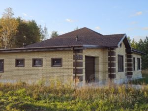 Прочность и качество: Дом построен на совесть — монолитный фундамент, стены из керамзитоблоков с утеплением и кирпичной отделкой.