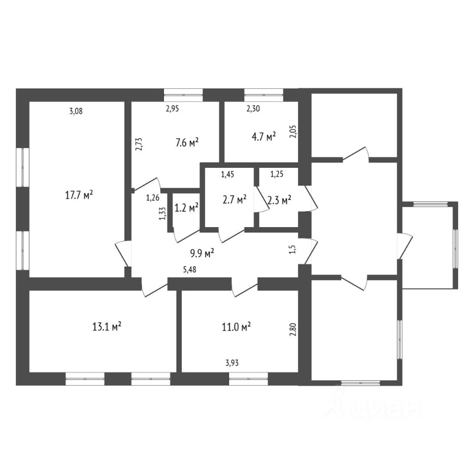 В доме три изолированных комнаты и кухня. Есть веранда и кладовая.