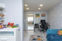 Вся отделка выполнена с использованием качественных материалов: натяжные потолки и ламинат придают дому современный и ухоженный вид.