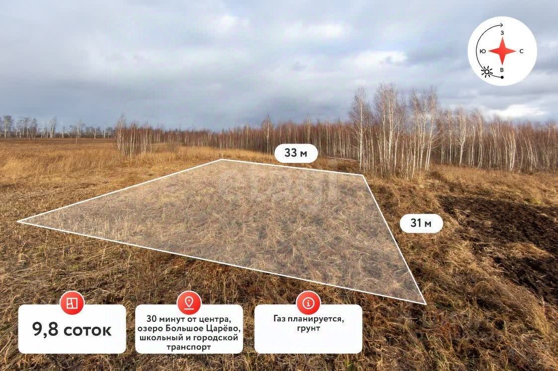 Продаётся участок правильной прямоугольной формы, на 9-км Велижанского тракта в СНТ Большое Царёво-1, рядом с озером Большое Царево. Всего 7 минут от объездной, 30 минут от центра Тюмени. До общества по новой асфальтовой дороге ходит автобус 120. Детей в школу возит школьный автобус. В следующем году подведут газ к обществу, после постройки дома можно довести бесплатно газ до участка. Общество новое, нет старых построек, можно самостоятельно спланировать строительство нового уютного дома, бани, беседки, высадку деревьев и цветов. Это прекрасное место для строительства дачи или капитального дома для постоянного проживания. Отличное место для отдыха всей семьей!Звоните? Покажу в любое время!