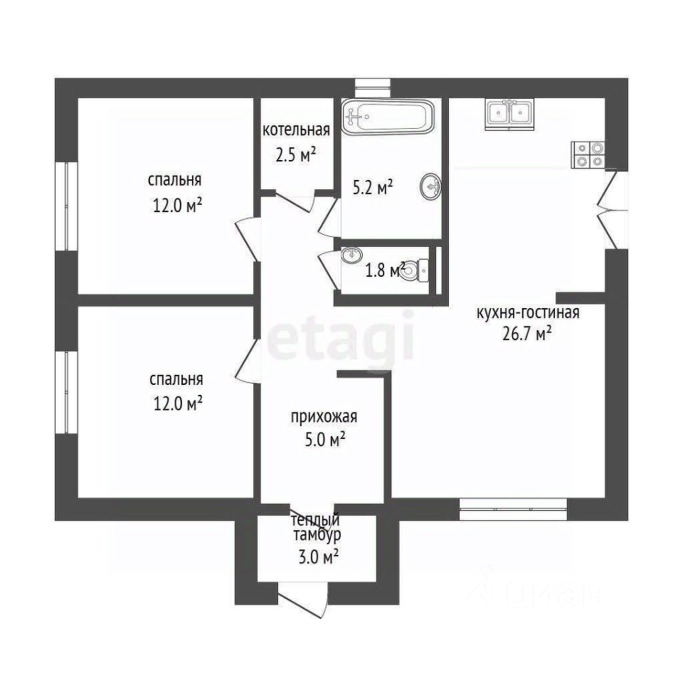 ПЛАНИРОВКА: ничего лишнего и достаточно места для всех и всего. 2+, можно выделить 3-ю комнату из большой кухни-гостиной. Вам будет легко организовать ужин в саду — из кухни есть выход на террасу. Оцените удобство теплого тамбура — не нужно нести грязную обувь в чистый дом. И в нем есть даже розетка для сушилки обуви.