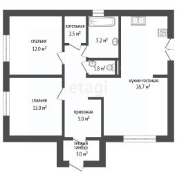 * ПЛАНИРОВКА: ничего лишнего и достаточно места для всех и всего. 2+. Вам будет легко организовать ужин в саду — из кухни есть выход на террасу. Оцените удобство теплого тамбура — не нужно нести грязную обувь в чистый дом и розетка для сушки обуви. Точную планировку и размеры комнат смотрите на одном из фото.
