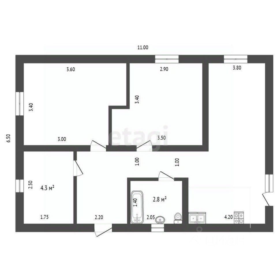Внутри вас ждет продуманная планировка, включающая две отдельные спальни и просторную кухню-гостиную. Совмещенный санузел оборудован душевой кабиной, что обеспечивает максимальное удобство.