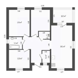 Крыша выполнена с использованием деревянной стропильной системы и утеплена минеральной ватой, что обеспечивает надежную защиту от неблагоприятных погодных условий. Металлическая черепица добавляет эстетическую привлекательность и долговечность вашему дому.