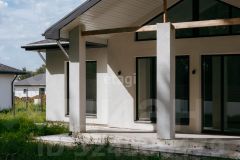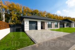 Участок огорожен со всех сторон забором из лиственницы, что гарантирует вашу безопасность и уединение. Придомовая территория благоустроена: здесь вас ждут зеленый газон и удобные дорожки, ведущие к входу в дом и гараж.