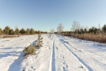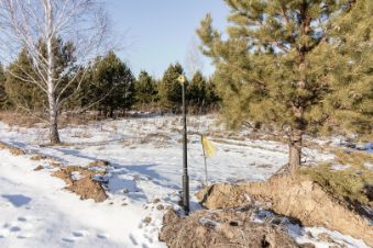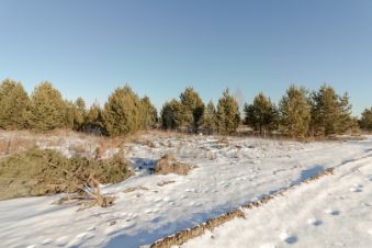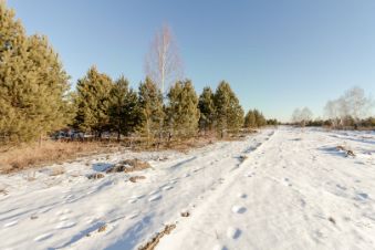 Участок находиться в окружении молодых сосен и многолетних деревьев.