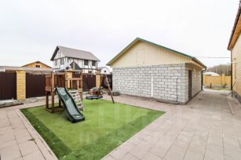 Участок площадью 14,5 соток впечатляет своим ландшафтным дизайном и продуманной зоной отдыха. За домом расположены плодовые насаждения и теплицы, а также уютный домик для отдыха с баней и гараж кирпичный, с автоматическими воротами. Для детей предусмотрена игровая площадка, что делает этот дом идеальным местом для семейной жизни.