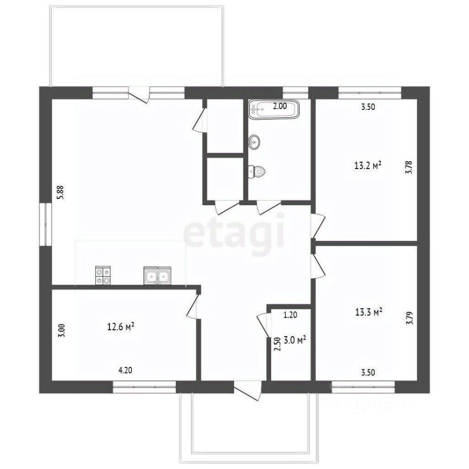 Продажа капитального одноэтажного дома, площадью 101.8 кв.м., три изолированных комнаты по 16, 13,12 кв.м, просторная прихожая, котельная, ванная, с/у и большая кухня-гостиная 32,7 кв.м. с отдельным выходом на террасу.