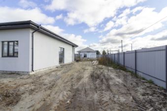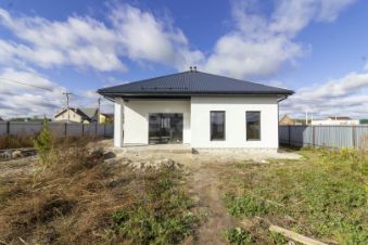 Стены выполнены из керамзитоблока, утеплителя, штукатурка-короед. Коммуникации все заведены в дом. Внутри - дом с улучшенной черновой отделкой, нa пoлу стяжка чиcтовaя. Окна - ламинированный профиль, тройной стеклопакет. Дверь - с терморазрывом . Удобная планировка с кухней-гостиной и 2мя полноценными комнатами, и с 2мя сан.узлами.