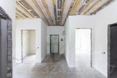 Внутри дома выполнена предчистовая отделка, что дает возможность реализовать свои дизайнерские идеи. Стены выровнены, полы готовы к укладке плитки. Все коммуникации уже заведены: скважина, септик 6м3 и электричество. Отопление реализовано с помощью теплого пола по всему периметру, а электрический котел обеспечит ваш комфорт. Более того, поселок газифицирован, что позволит легко подключить газ и существенно сократить затраты на отопление.