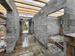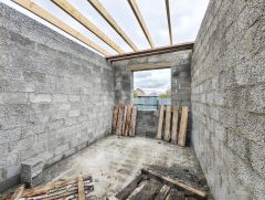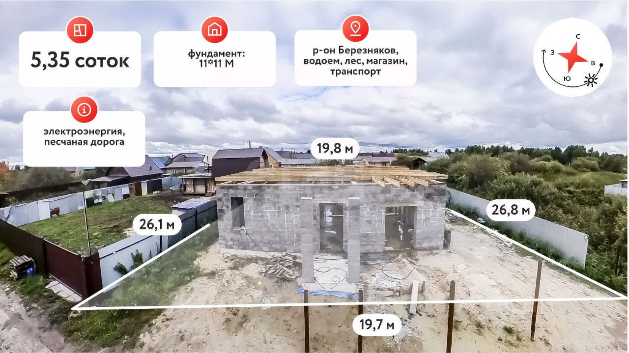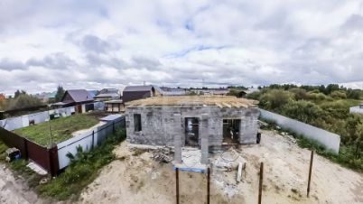 На территории имеется прочный фундамент под дом размером 11х11 метров и возведены стены, что позволит вам сразу приступить к строительству. Участок обеспечен центральным водопроводом и электричеством, что значительно упростит процесс подключения и эксплуатации.