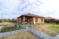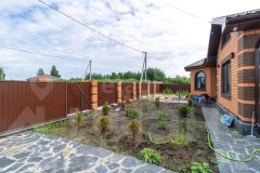 Дом площадью 110.9 кв.м. расположен на участке 9 соток. Участок ровный, огорожен забором по фасаду, установлены распашные ворота и входная калитка, периметр забора из профнастила.