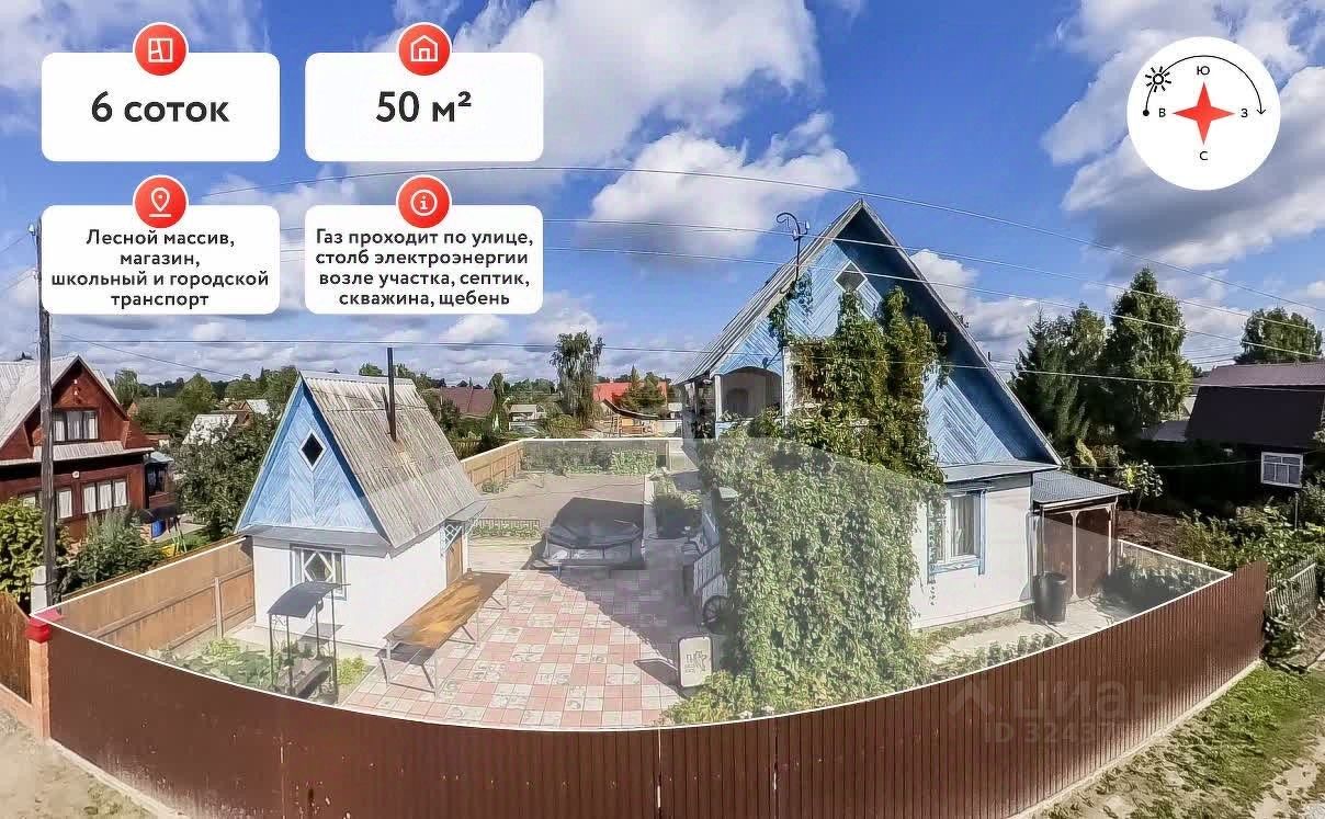 Продаётся дача, в которой есть всё, что нужно для дачи: - площадь участка - 6,15 соток . - на территории участка есть великолепная баня - есть гараж и оборудованы парковочные места для машин - установлен бассеин - высажены яблони, груши, малина, смородина - теплицы для посадок - все дорожки сделаны капитально Ключевым преимуществом объекта является его расположение: территория сообщества граничит с сосновым бором и смешанным лесом, что гарантирует приватность, чистый воздух и непосредственный доступ к природе для прогулок, сбора грибов и ягод. Участок площадью 6,15 соток полностью обустроен для комфортного отдыха и садоводства. На территории присутствует фруктово-ягодный сад с яблонями, грушами, малиной и смородиной, разбиты грядки, установлены теплицы и есть место для газона. Инфраструктура включает надежную баню из бруса на ленточном фундаменте, надувной бассейн, гараж и оборудованные парковочные места, а также колодец. Дом мансардного типа общей площадью 51 кв.м. построен из бруса на ленточном фундаменте. На первом этаже расположена совмещенная кухня-веранда и комната, на втором — просторное мансардное помещение свободной планировки. Высота потолков составляет 2,6 метра, проведена новая электропроводка, отопление печное, имеется летний туалет. СНТ полностью газифицировано, магистральный газ проходит по улице, что при необходимости позволяет организовать автономное отопление. Поселок с круглогодичным проживанием оборудован шлагбаумом, по маршруту ходит школьный автобус. В шаговой доступности (7 минут до остановки) находятся маршруты 145 и 155, а на повороте с тракта расположены магазины "Магнит" и "Строительный Двор". Это место идеально подходит для тех, кто ценит спокойный образ жизни на природе, уединение и возможность заниматься садоводством. Код пользователя: 68578 Номер в базе: 9667297