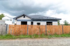 Площадь дома 105 кв.м. Продуманная планировка: просторная кухня гостинная с панорамными окнами плюс 3 изолированные комнаты, большой санузел, место под гардеробную, отдельная котельная. Дом на этапе строительства, в доме будут установлены окна, входная дверь, отмостка, выполнена предчистовая отделка. Крыша в металлочерепице, установлены стоки и снегозадержатели.