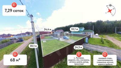 Продается дом с земельным участком 7 соток (ровный, высокий, огорожен со всех сторон) в селе Луговое по скандинавскому проекту. В доме расположена просторная кухня-гостиная, одна спальня, терраса, которую можно использовать как кабинет или сделать комнату, санузел с ванной. Установлены открытые витражные окна, что придаёт комнате больше пространства, функциональности, света и тепла. При строительстве использованы натуральные и экологичные материалы. Снаружи дом отделан деревом и профлистом цвета серый графит. Внутренняя отделка также массив дерева. Утепление 200 мм в полу и 150 мм в стенах и крыше. Дом для комфортной загородной жизни и отдыха в благоустроенном коттеджном поселке. До центра города 15 км, примерно 20 минут на автомобиле. Несколько минут до объездной дороги. Вода-скважина, канализация-септик 10 куб. переливной, фундамент (винтовые сваи), есть кондиционер. Отопление электрическое, газ подведен к участку. На участке есть фруктовые и хвойные деревья, кустарники. При продаже дома остаётся, всё, что есть на фото. При температуре -35 в доме +25. Развитая инфраструктура, в селе есть школа, детский сад, продуктовые, строительные магазины, аптеки, почта и пр. Звоните, помощь в одобрении ипотеки.