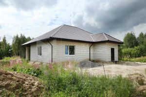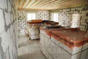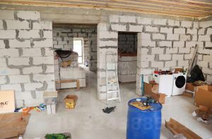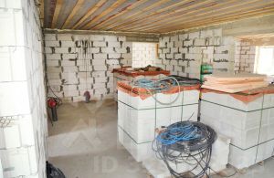 Дом выполнен из газоблока 300мм, облицовка белым кирпичом.Утеплитель 50мм.Залит армопояс. Скважина.