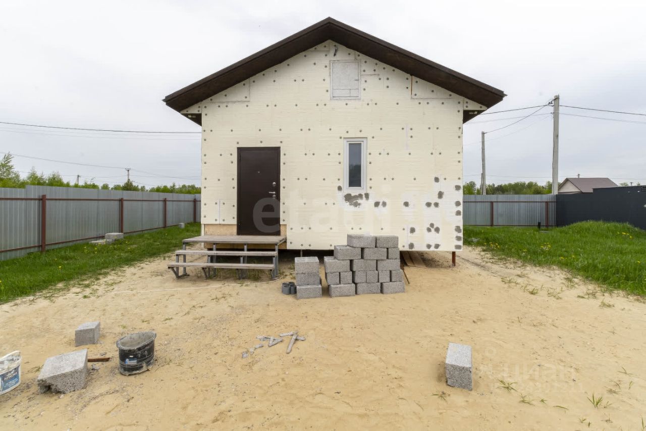 Дом: Предлагаем к приобретению каркасное жилое строение, расположенное на винтовых сваях. Внешняя стена выполнена из OSB, а внутренние полости каркаса подготовлены под утеплитель толщиной 150 мм. В наличии частичные строительные материалы для внутренней отделки. Снаружи дом утеплен пеноплексом толщиной 50 мм и оштукатурен, подготовлен для нанесения финишной штукатурки под короед. Установлены пластиковые окна и качественные входные двери. Крыша покрыта металлосайдингом.