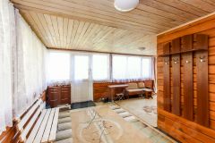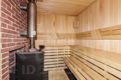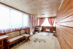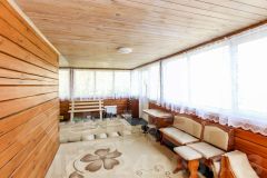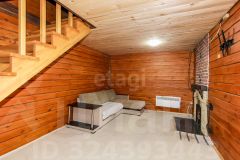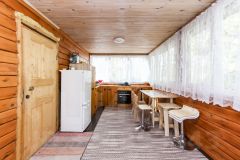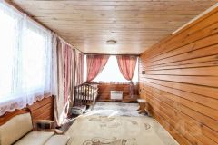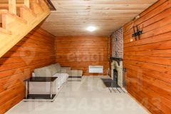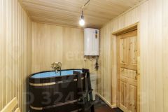 Построен из бруса. Брус уже дал усадку. Утеплен ленточной паклей. Современный ремонт. На первом этаже банный комплекс. Кухня. Так же технические помещения.