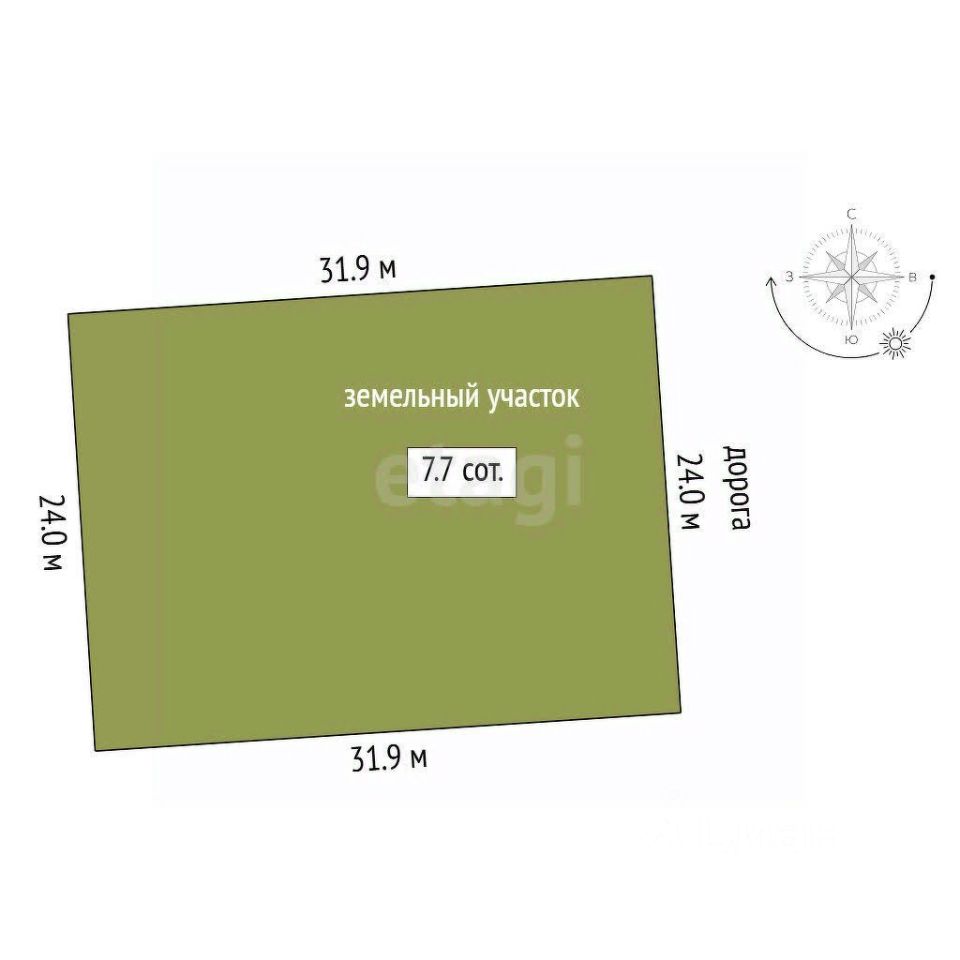 Участок правильной формы площадью 7,68 соток. Огорожен забором из профнастила с 2-х сторон.