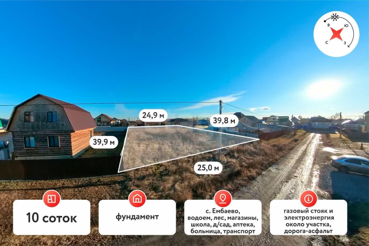 Уважаемые покупатели ! Предлагаем вашему вниманию прекрасный земельный участок площадью 10 соток в живописном селе Ембаево! Это идеальное место для строительства дома вашей мечты и создания уютного семейного гнездышка в гармонии с природой и удобствами современной жизни. На участке уже есть ленточный фундамент 7*9 пятистенка .