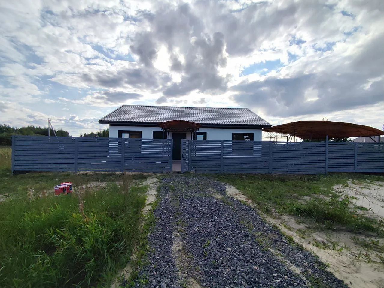 Дом полностью готов для проживания, СТЕНЫ ПОКРАШЕНЫ, потолки натянуты, на полу ламинат, в санузле и входная группа керамогранит, сантехника установлена, двери смонтированы.
