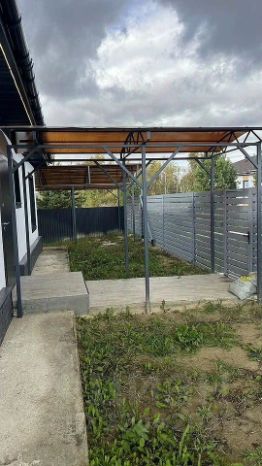 Построены два навеса: пешеходный до входной двери от калитки и для авто.