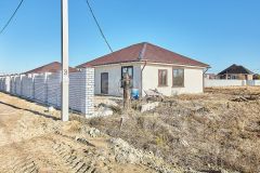 Участок площадью 10 соток окружен капитальным забором из кирпича и профнастила шоколадного цвета, создавая атмосферу уединения и безопасности. Въезд на территорию осуществляется через откатные ворота и калитку.