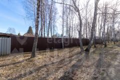 Участок с 3-х сторон огорожен профнастилом, с одной стороны от соседей деревянный забор. Участок живописный, много насаждений: малина, клубника, крыжовник, яблони. На участке есть: небольшой домик около 30 кв.м. из кирпича, состоящий из 1 комнаты и веранды с печным отоплением, печь новая; баня с новыми полами; 2 теплицы.
