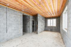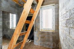 Фундамент -плита из бетона М250, два уровня арматуры диаметром 12. Стены керамзитоблок 300. Утеплитель мин вата 50. Облицовка кирпич цвет шоколад Брылино. Сделан армопояс. Четырехскатная крыша из мягкой черепицы Тегола(TEGOLA). Разводка электричества проведена, газ. Окна тройной стеклопакет. Есть отдельный выход на террасу из дома. Скважина облагороженная(сделан киссон). Септик переливной. Выведены все коммуникации под баню.