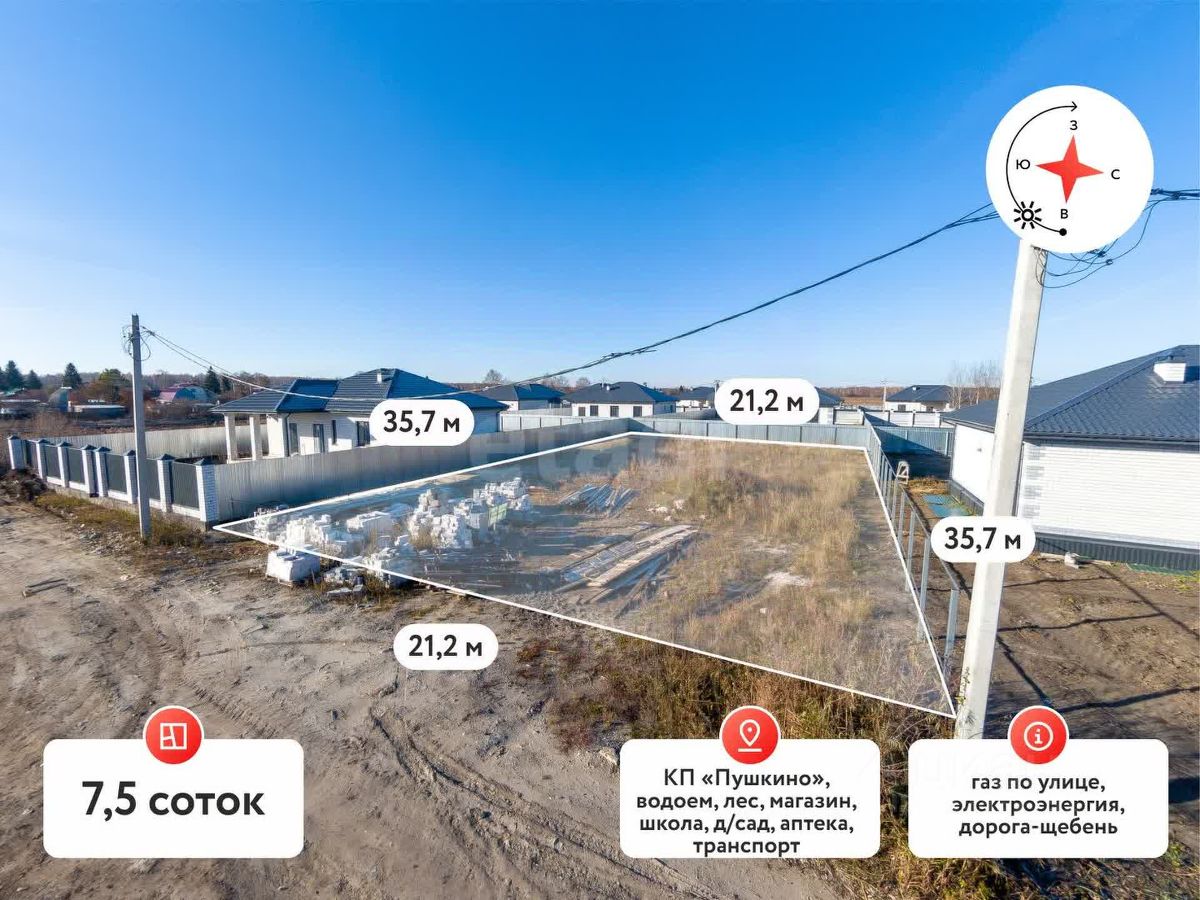 Земельный участок правильной формы 7,5 соток в КП Пушкино, расположенный в районе п.Березняки. Категория-земли населённых пунктов, Вид разрешенного использования - ведение садоводства. Земельный участок в собственности. Свободен от построек. Отличный вариант для постоянного проживания. Соседи вокруг уже построились. Коттеджный поселок имеет всю необходимую для жизни инфраструктуру: газификация, электроснабжение, дороги, асфальт. Район активно застраивается.
