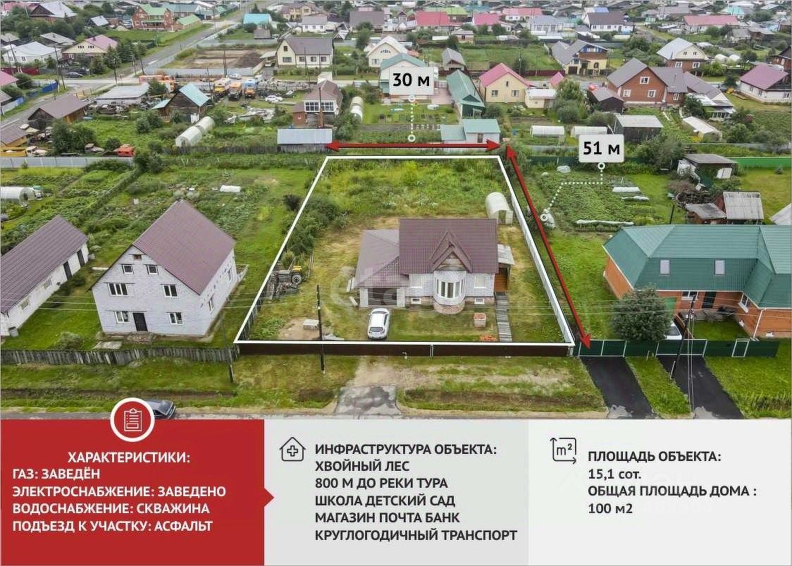 Продаётся двухэтажный дом с гаражом, идеальное жилье для тех, кто стремится к уединенности и природе. Расположенный вдали от шумной трассы, этот дом граничит с хвойным лесом, предлагая тишину, чистый воздух и уютные прогулки всей семьёй. Всего в 800 метрах от недвижимости протекает река Тура, добавляя красоты и возможности проводить время на природе. Помимо этого, рядом с селом находится конный клуб Аллегро, где вы сможете насладиться спортивными тренировками и конными прогулками. Улица, на которой расположен дом, является тупиковой, что означает минимальное автотранспортное движение и уютный район, где появляется только соседская машина. Этот прекрасный дом был построен в 2013 году и занимает участок площадью 15 соток. Первый этаж имеет площадь 55,5 квадратных метров и включает в себя просторную кухню, гостиную, большой санузел и прихожую с встроенным шкафом-купе и лестницей, ведущей на второй этаж. Второй этаж предлагает площадь 45 квадратных метров. Дом оснащен газовым отоплением, а водоснабжение осуществляется из скважины глубиной 15 метров. Септик емкостью 6 кубов обеспечивает комфортное использование системы канализации. Этот дом находится в селе с развитой инфраструктурой, в непосредственной близости от школы, детского сада, продуктовых магазинов, почты и Сбербанка. Удобное городское транспортное сообщение позволит вам легко добраться в город и вернуться обратно. Показы дома возможны в удобное для вас время. Звоните нам прямо сейчас и купите этот прекрасный дом для вашей семьи!
