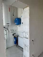 Водоснабжение - скважина, канализация - септик переливной. Газ в поселке есть, электричество заведено. Разводка в доме.