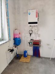 Дом качественной постройки из керамзитоблоков на залитой подушке, облицовка-брылиннский кирпич. Забор по периметру, ворота-профнастил, установлен септик, стены белые оштукатурены, стяжка пола с системой "Теплый пол", электрика,скважина 40 метров, вода заведена в дом, септик 9 куб, водостоки с крыши, качественная входная дверь. Кухня-гостиная площадью 27 кв метра с выходом на террасу,прямоугольной формы, в одной части кухня, в другой -гостиная . 3 изолированные комнаты, сан.узел, котельная с электрокотлом.