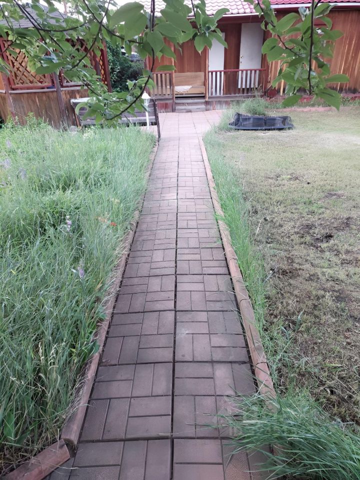 Есть плодовые деревья (яблони, груша, вишни, крыжовник, ирга, красная смородина), зеленые насаждения жасмина, дикий виноград.