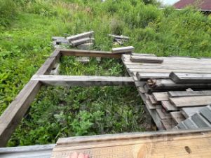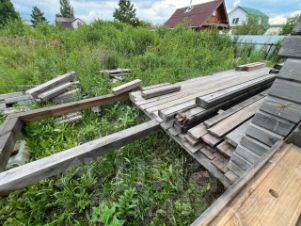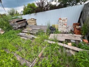 Дом огорожен забором из дерева, бесплатно остаётся металл для установки распашных ворот.