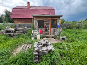 Выполнен из бруса лиственницы, на болтах-что гарантирует Вам износостойкость и неприхотливость в эксплуатации, крыша утеплена. Фундамент ленточный. Пристроена терасса на винтовых сваях, трубет доработки, весь материал есть.