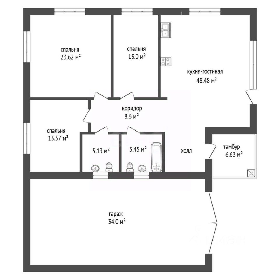 гараж очень большой 34 м2, он теплый.