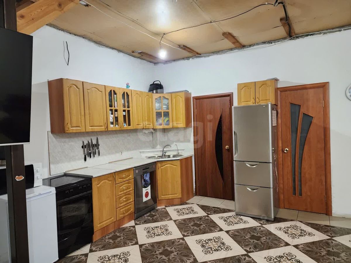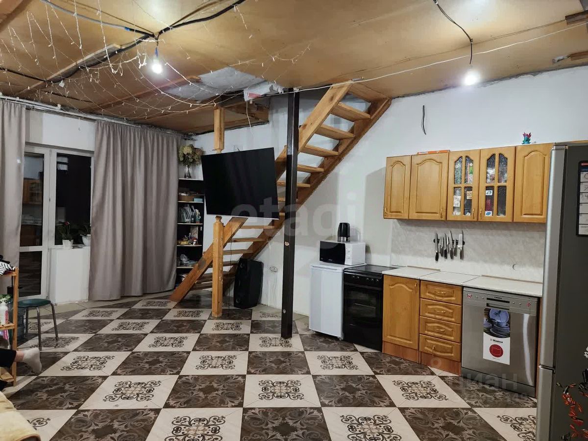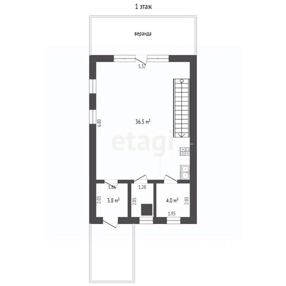 на 1 этаже прихожая; большая кухня-гостиная, где можно трапезничать всей своей семьёй или с гостями; совмещенный санузел, котельная, погреб и выход на просторную веранду.