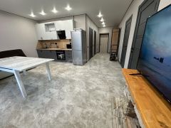 Фундамент: ленточный с залитой монолитной плитой. Наружные стены: блок поревит, обложенный полуторным белым силикатным кирпичом. Крыша: четырехскатная, утепленная, перекрытия деревянные, покрытая ондулином. Внутренняя отделка: современный ремонт с мебелью и техникой. Водоснабжение: автономное, своя скважина, установлен насос, фильтры, расширительный мембранный бачок, манометр, реле давления. Водоотведение: автономное, индивидуальный септик из бетонных колец в количестве 3 штук. Отопление: индивидуальный электрокотел, теплый водяной пол, расширительный бачок, коллектор для теплого пола, установлены 2 циркуляционных насоса. Электричество: электропроводка по всему дому. Планировка: кухня-гостиная 22,1 кв.м., три изолированные комнаты 12,2, 14,1 и 15,8 кв.м., санузел 5,8 кв.м. и котельная 6,3 кв.м.