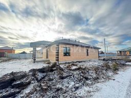 Площадь будущего объекта — 115 м². Планировка включает три автономные комнаты и кухню-гостиную с выходом на террасу. Участок правильной геометрии.