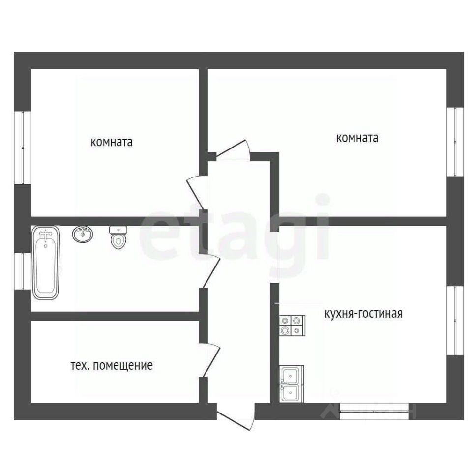 Общая площадь 72 кв.м., функциональная планировка: две спальни, кухня-гостиная, санузел и техническая комната.