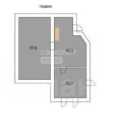 Цокольный этаж: 3 помещения 31, 43 и 67 кв.м.
